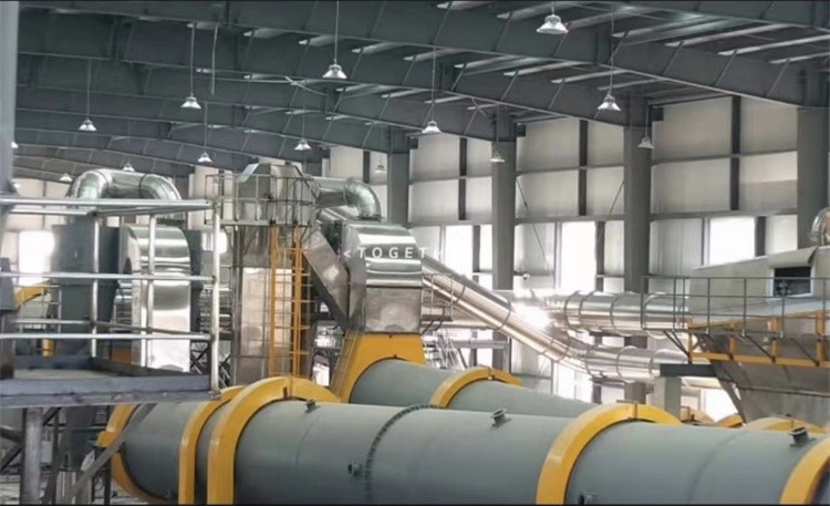 安徽六安金寨縣年產(chǎn)5萬噸有機(jī)肥顆粒生產(chǎn)線現(xiàn)場,發(fā)酵區(qū)采用大跨度輪盤翻拋機(jī),粉末生產(chǎn)線:料倉,粉碎機(jī),篩分機(jī),包裝機(jī)。顆粒生產(chǎn)線采用五倉配料機(jī),轉(zhuǎn)股造粒機(jī),圓盤造粒機(jī),一級烘干機(jī),二級烘干機(jī),冷卻機(jī),篩分機(jī),包膜機(jī),包裝機(jī)等全套設(shè)備。